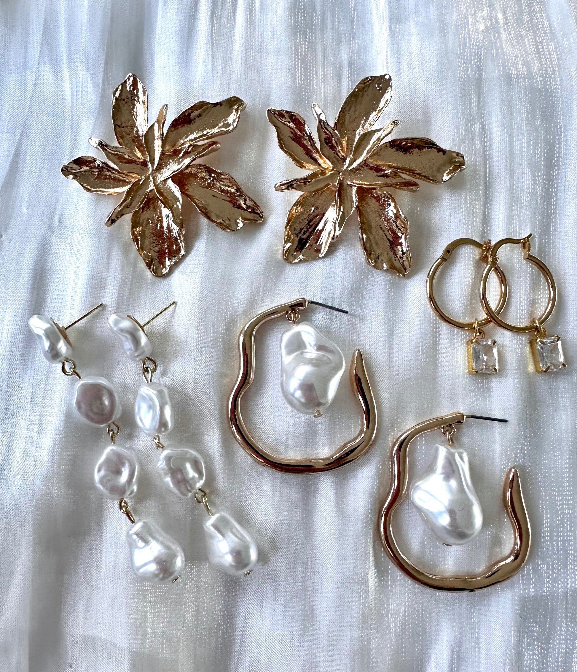- Flor Statement Earrings – dramatic gold flowers for sunset strolls (AUD $34.95)