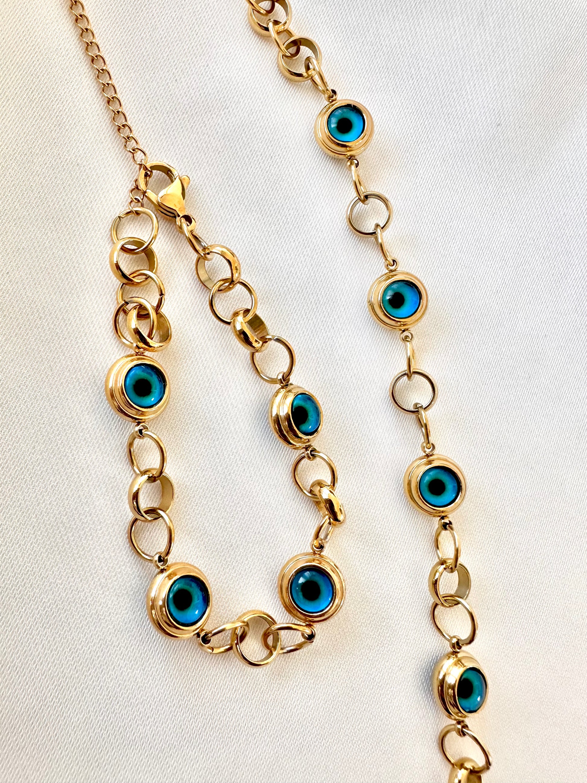 Wrap yourself in charm with our dainty evil eye bracelet – a subtle and stylish talisman for good vibes. This delicate accessory adds a touch of protection and elegance to your everyday ensemble.