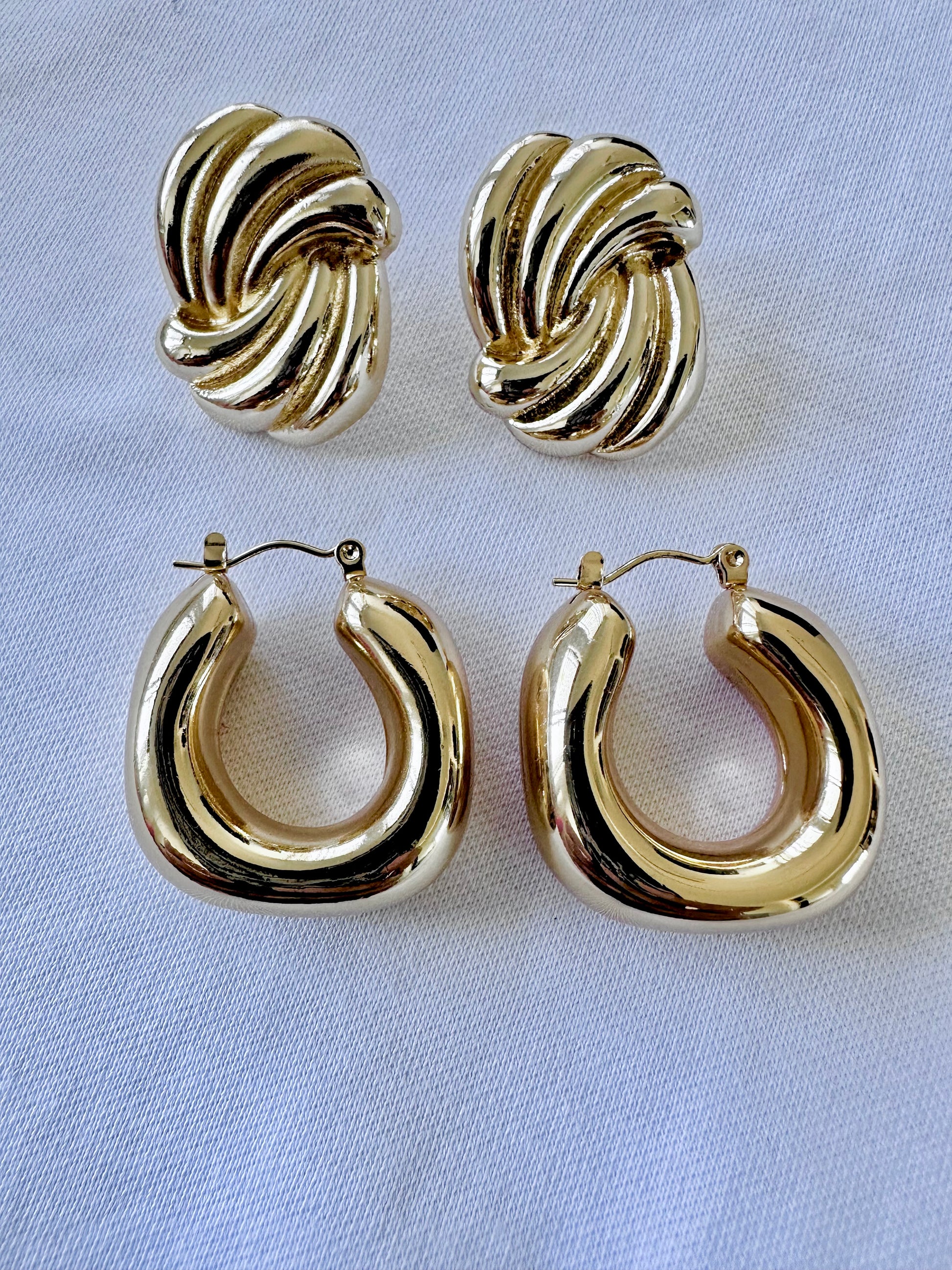 These bold, sculptural gold hoops are perfect for making a statement. With a smooth, rounded shape, they’ll elevate any casual or formal outfit effortlessly