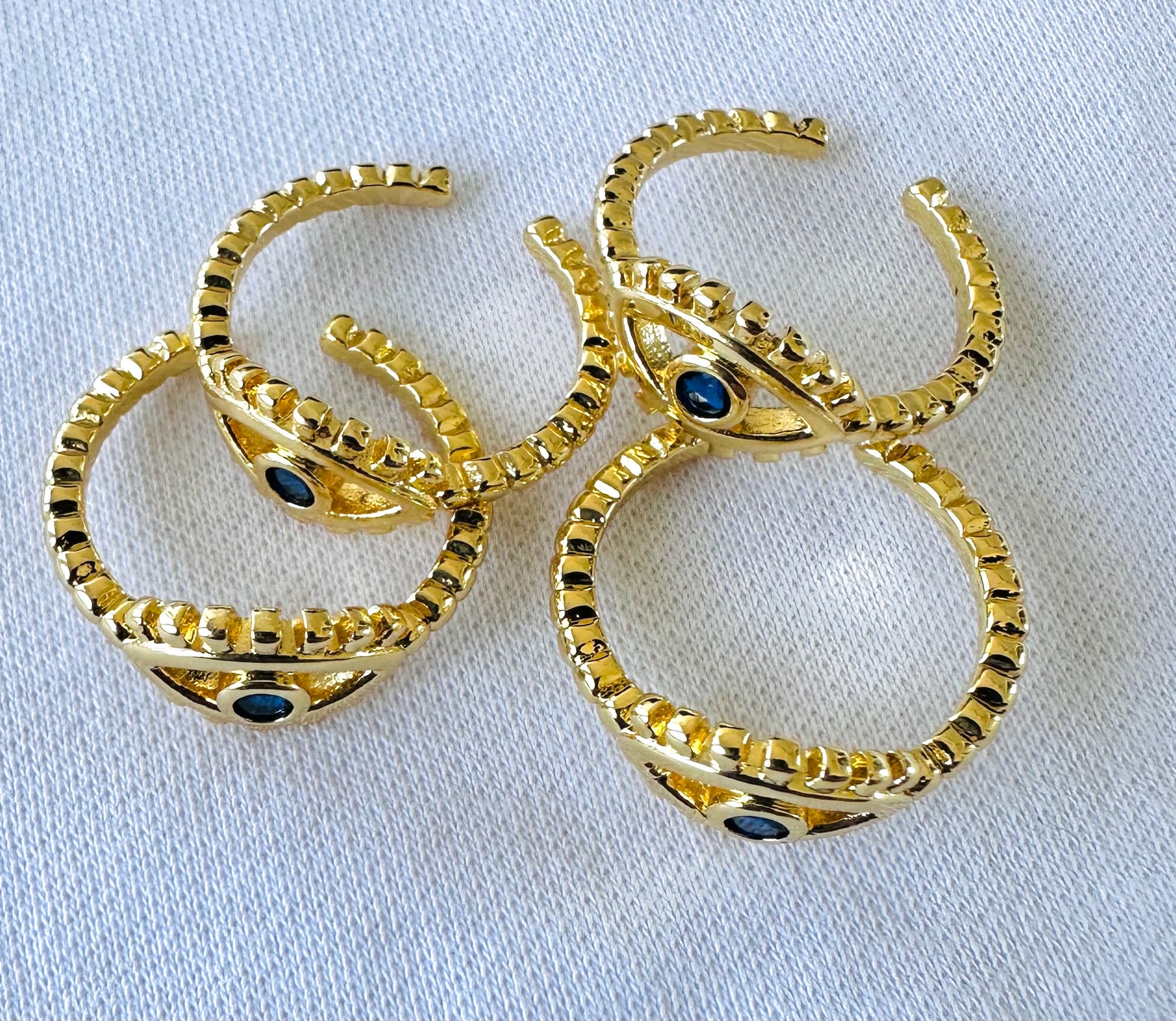 Unique gold ring featuring a protective evil eye design, blending fashion and symbolism for a stylish talisman. Elevate your look with this meaningful accessory that adds both charm and a touch of mystique.