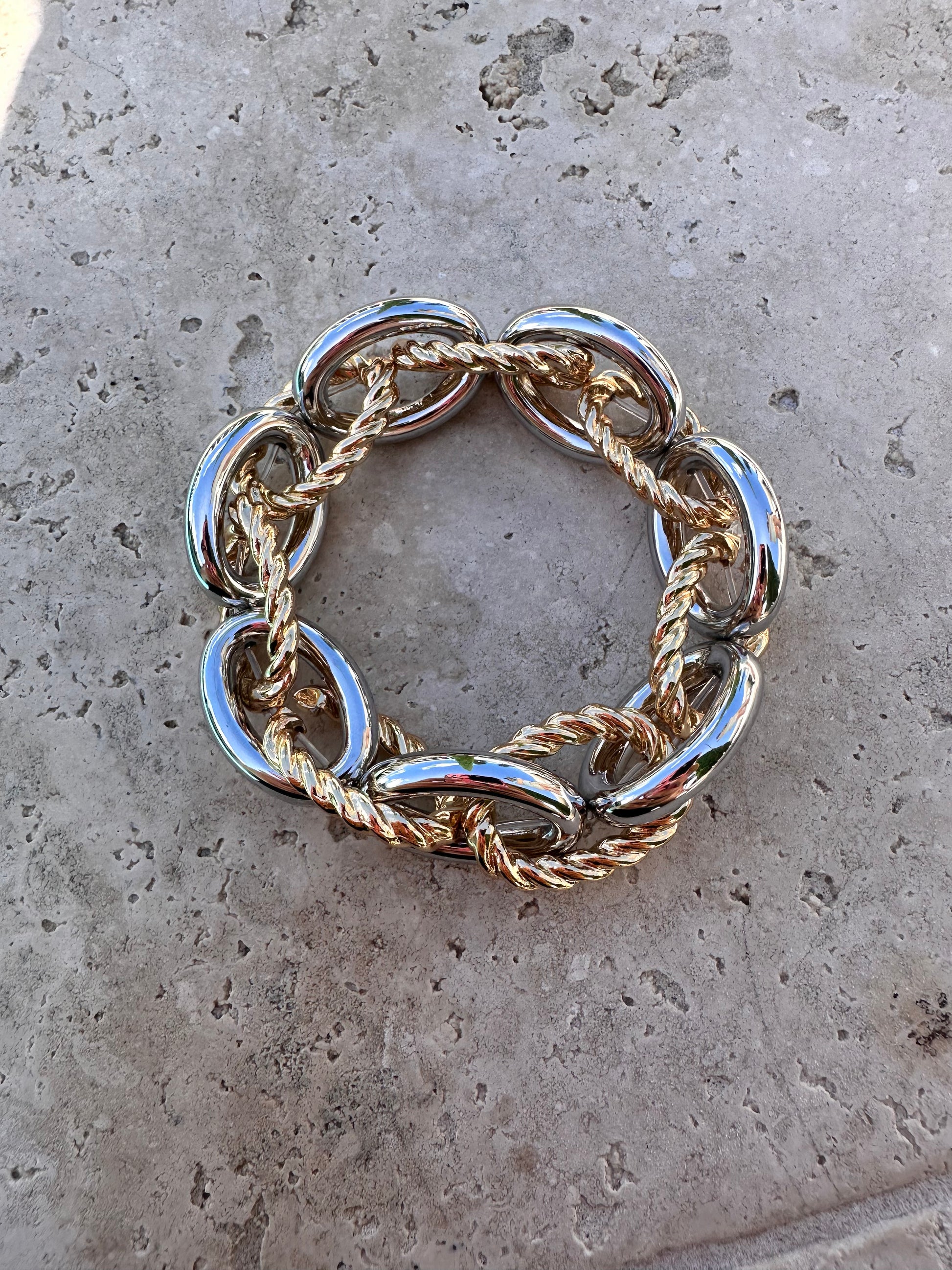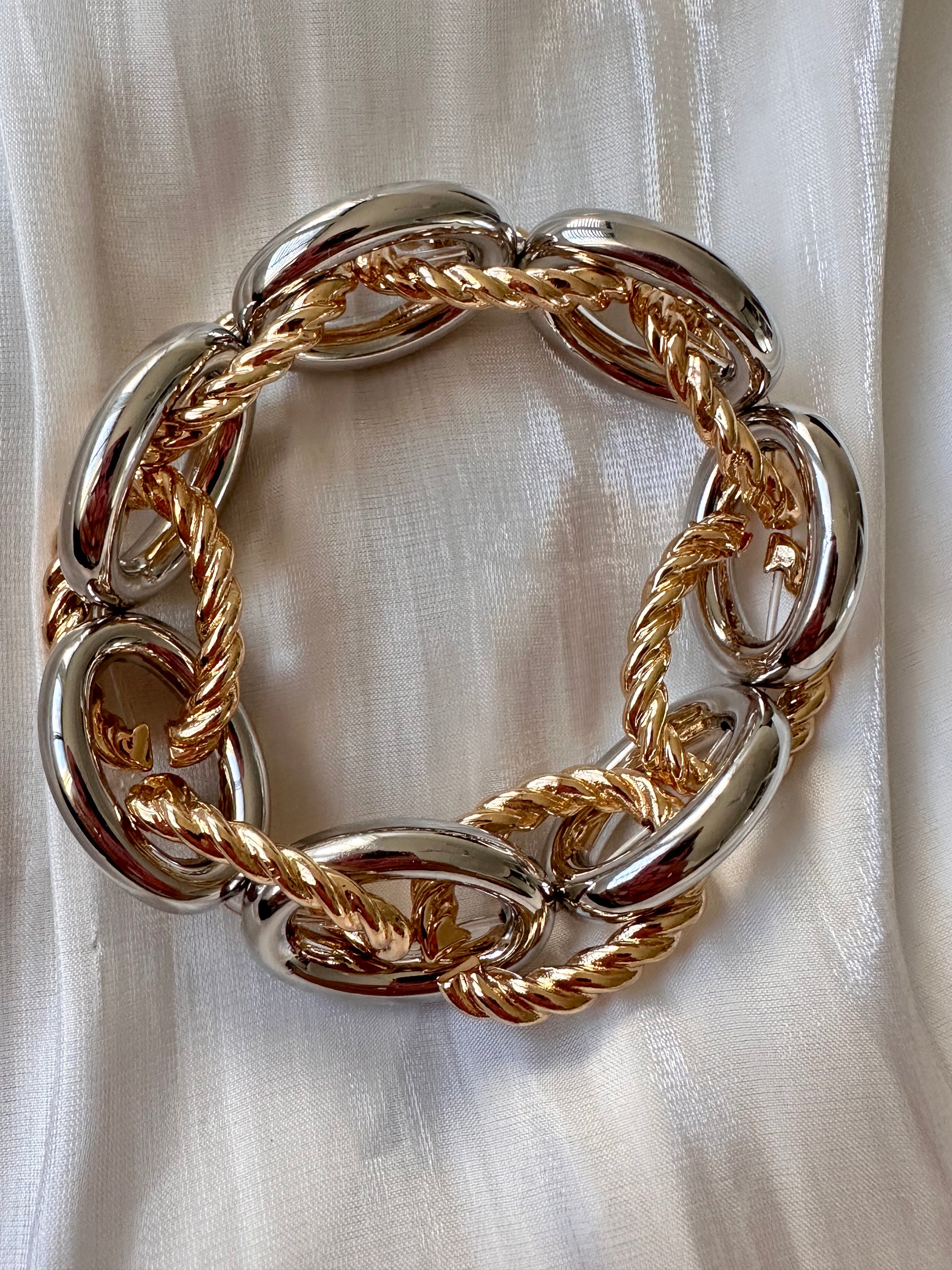 Classy yet bold, this gold metal bracelet adds a touch of sophistication to any look. Its sleek and polished design makes it perfect for everyday elegance or special occasions